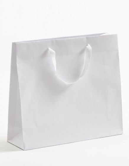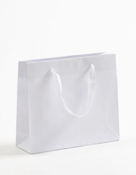 Papiertragetaschen „EXCLUSIVA WEISS“, mit weißem Baumwollband und Kartoneinlage